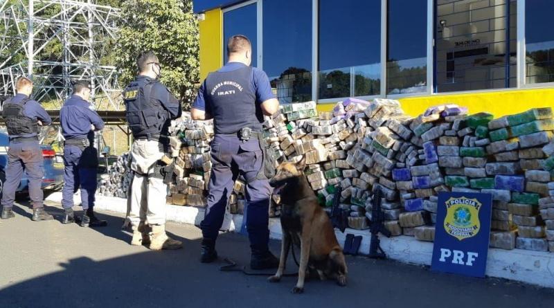 A Polícia Rodoviária Federal (PRF) apreendeu dois fuzis e 1.744,2 quilos de maconha na tarde desta segunda-feira (4) em Irati, na região centro-sul do Paraná. Acompanhados por cães farejadores, guardas municipais da cidade prestaram apoio durante a ocorrência.