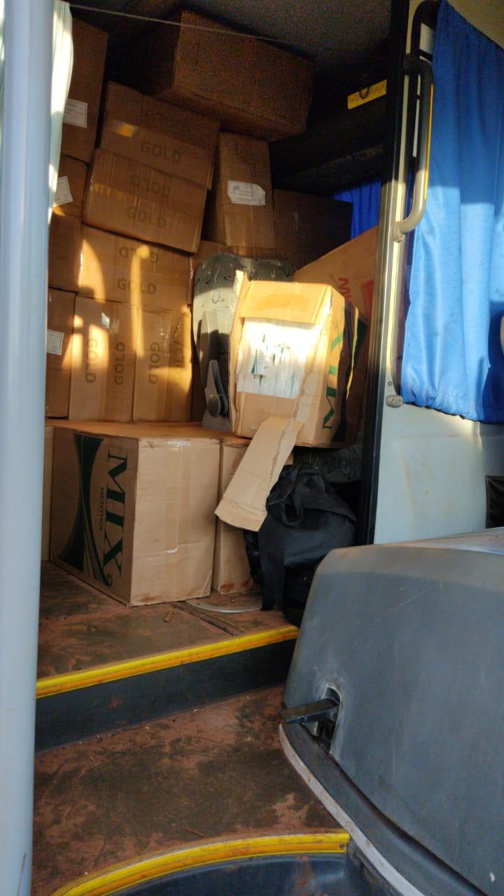 Iniciou-se então perseguição que acabou brevemente, uma vez que os motoristas pararam os veículos à beira da rodovia e adentraram uma área de mata, não sendo localizados. Dentro dos ônibus, que não possuíam bancos de passageiros, foi encontrada grande quantidade de cigarros contrabandeados.