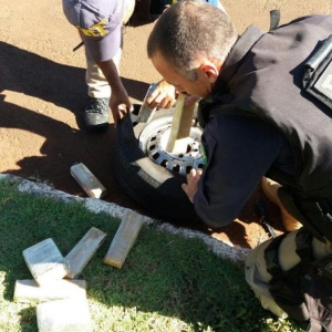 A Polícia Rodoviária Federal (PRF), apreendeu na manhã de terça (3), em Santa Terezinha de Itaipu, 36 quilos de maconha escondidos dentro de um estepe de um Fiat Uno. Também foram encontrados 112 munições em uma mochila. Os dois ocupantes do carro foram presos por tráfico de drogas e porte ilegal de munição.