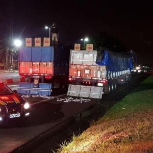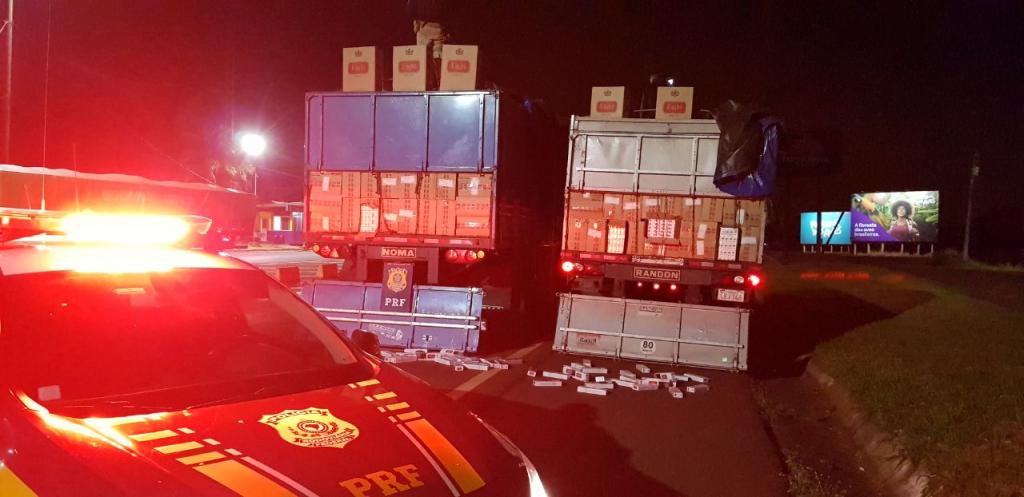A Polícia Rodoviária Federal (PRF) prendeu um homem e apreendeu dois conjuntos, Cavalo Trator e Semirreboque, carregados com cigarros. Sendo ambas as apreensões realizadas pela equipe de PRFs em serviço na UOP (Unidade Operacional) de Santa Terezinha de Itaipu, no início da madrugada desta quinta-feira (19)