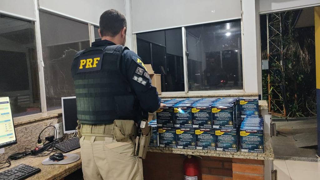 Mais tarde, por volta das 21 horas, em Santa Terezinha de Itaipu (PR), policiais, em vistoria a um ônibus que fazia a linha Foz do Iguaçu - Santos (SP), encontraram, no bagageiro do veículo, em caixas de papelão e em uma mochila, 68 embalagens do medicamento Minoxidil. A passageira, de 32 anos disse aos policiais que habitualmente leva esse tipo de produto para seu patrão, dono de uma loja de cosméticos em São Paulo e desconhecia o caráter ilícito dos produtos, introduzidos ilegalmente no Brasil.