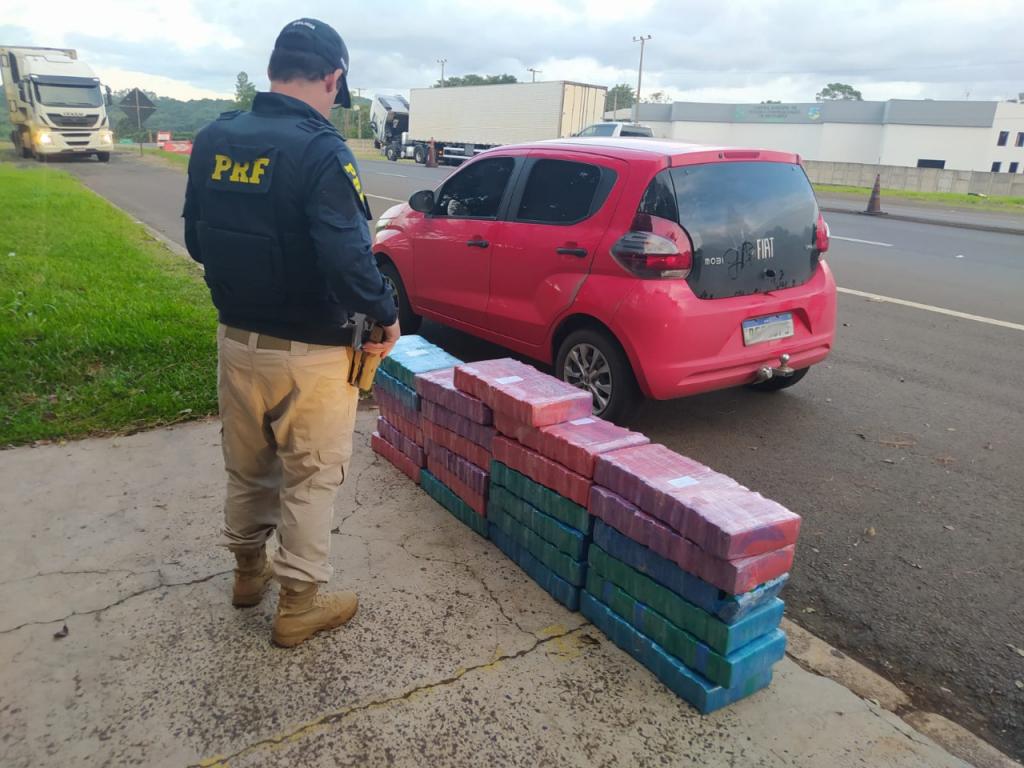 Na terça (5), por volta das 17 horas, policiais rodoviários federais abordaram um homem de 32 anos, que conduzia um Fiat Mobi na BR-277, em Nova Laranjeiras (PR). Durante a vistoria, encontraram diversos tabletes de maconha, que totalizaram 272,5 quilos da droga.