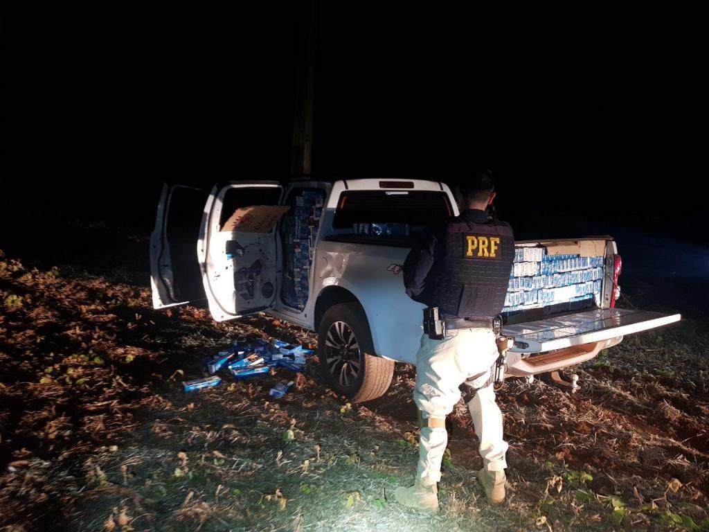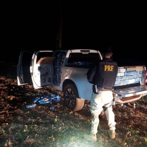 Por volta das 21 horas, agentes da PRF tentaram abordar duas caminhonetes na BR-158, em Campo Mourão. Os motoristas desobedeceram a ordem e fugiram. As caminhonetes foram perseguidas e alcançadas, mas os motoristas já haviam fugido. No interior dos dois veículos foram encontradas cerca de 50 mil carteiras de cigarros contrabandeados do Paraguai, avaliados em cerca de R$ 250 mil.