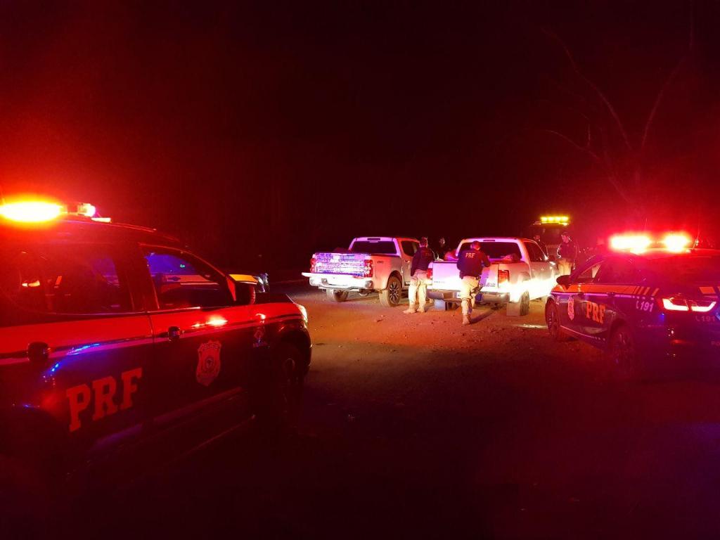 Alguns minutos mais tarde, enquanto os policiais aguardavam o guincho para recolher as caminhonetes recuperadas, dois veículos que passaram por eles chamaram a atenção das equipes, que se deslocaram para abordagem.