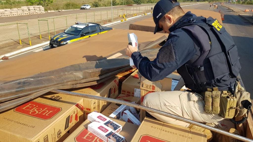 A Polícia Rodoviária Federal (PRF) apreendeu 500 mil carteiras de cigarros contrabandeados na manhã desta segunda-feira (31), em Guaíra. O motorista foi preso.