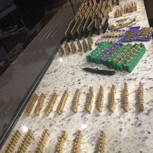 Em razão disso, os policiais iniciaram uma busca minuciosa no carro e encontraram 2.436 munições de diversos calibres, sendo 885 munições de calibre .40; 250 de calibre .45; 600 de fuzil 3,65; 401 de calibre .380 e 300 de calibre 9mm. Ainda, foi encontrado com o motorista a quantia de R$ 1.409,00.