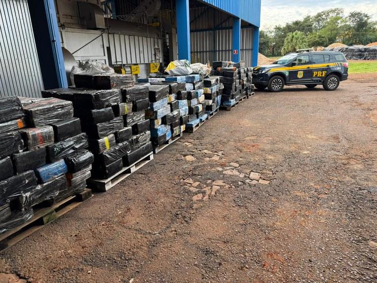 A droga foi encontrada pelos policiais durante a fiscalização e pesada numa empresa em Guaíra.