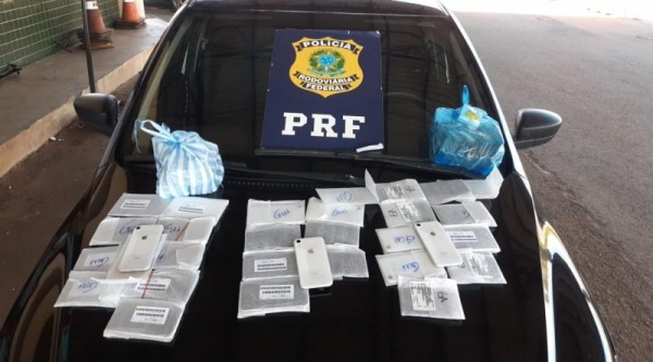 Dentro da jaqueta do motorista, de 22 anos, foram encontrados oito aparelhos de telefonia celular da marca Apple, modelo XR; com os dois passageiros – ambos de 25 anos de idade -, 10 telefones foram encontrados com cada, da mesma marca e modelo, totalizando 28 iPhones XR, avaliados em cerca de R$ 95,2 mil.