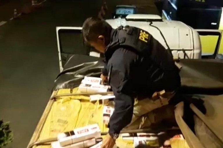 A Polícia Rodoviária Federal (PRF) apreendeu um caminhão bitrem carregado de cigarros contrabandeados do Paraguai, na noite desta segunda (25), em Balsa Nova (PR), na região metropolitana de Curitiba (RMC). O motorista abandonou o veículo e fugiu a pé, no momento da abordagem na BR-277.