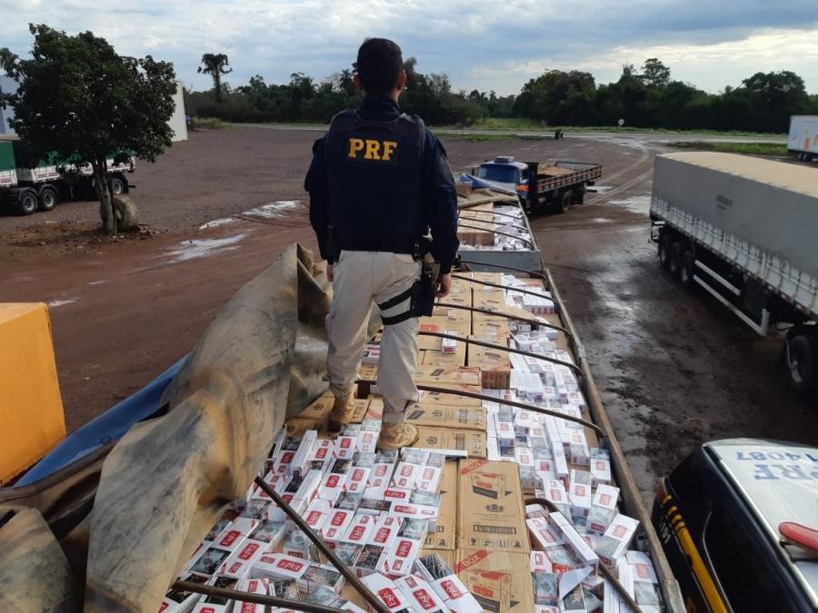 Foram realizadas buscas no local, porém o condutor não foi encontrado. Ao realizarem a retirada da lona, verificaram que o caminhão bi-trem se encontrava carregado com aproximadamente 600 mil maços de cigarros, com valor estimado em R$ 3 milhões.