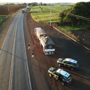 Por volta das 6h30, os policiais rodoviários federais abordaram um bitrem na BR-163.