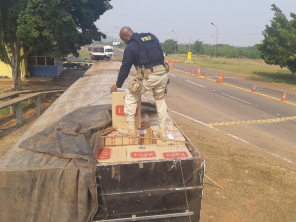A Polícia Rodoviária Federal (PRF) apreendeu, no início da tarde deste sábado em um caminhão bitrem, aproximadamente 60.000 pacotes de cigarros contrabandeados do Paraguai.