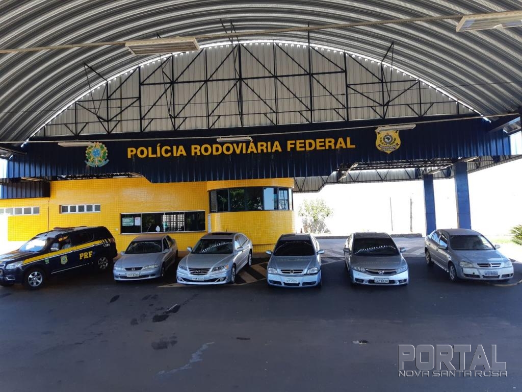 A Polícia Rodoviária Federal (PRF) e a Polícia Militar apreenderam seis veículos preparados para o transporte ilegal de cigarros contrabandeados na manhã desta segunda (24), em Guaíra e em Terra Roxa, na região oeste do Paraná. Um dos veículos era roubado e outro estava carregado com cigarros.