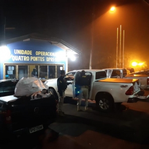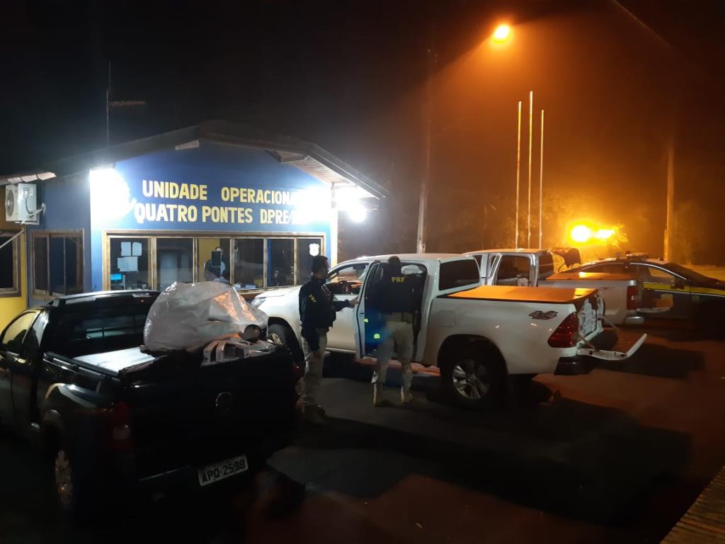 Foram localizados dois dos responsáveis pelos veículos que estavam hospedados no hotel, um morador de Carambei de 20 anos e outro vindo de Ponta Grossa de 45 anos. Informaram que levariam o contrabando até Curitiba.