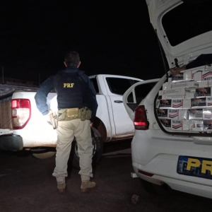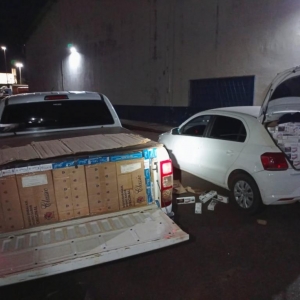 Na primeira ocorrências 2 indivíduos foram presos transportando 33,5 mil maços de cigarros em uma Ford Ranger e um Gol.