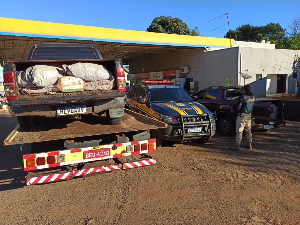 Durante fiscalização, foi dado ordem de parada a duas camionetes, uma Hilux e uma Toro.