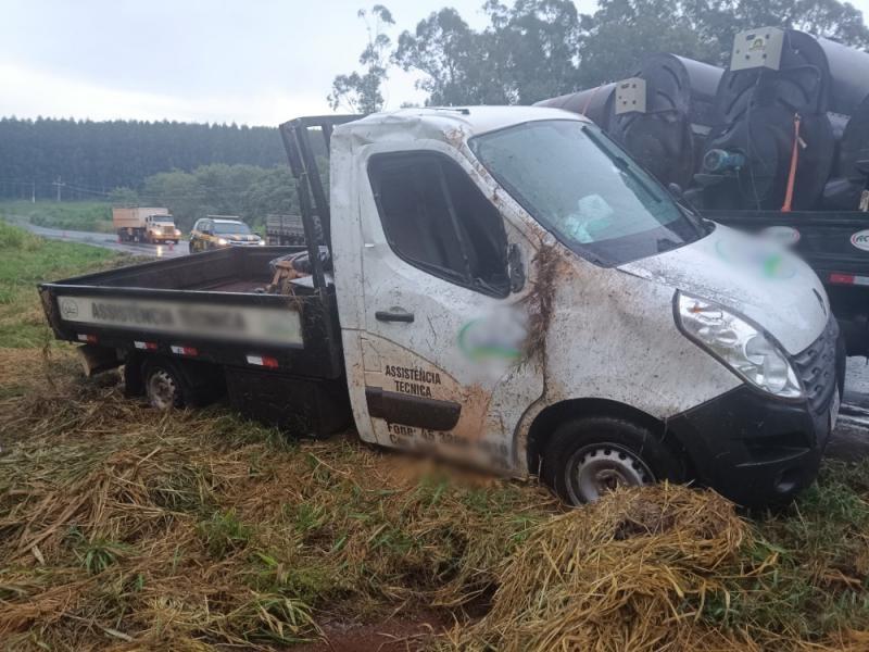 Conforme apurado no local, um utilitário Renault/Master tombou após sair da pista, nas proximidades da Dalmina. O veículo seguia em direção à Marechal Rondon.