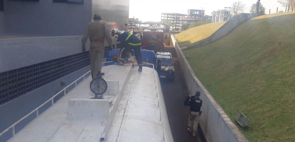 Durante a abordagem, a equipe da PRF desconfiou da dupla e decidiu fazer uma verificação minuciosa do veículo, que deveria transportar óleo vegetal.