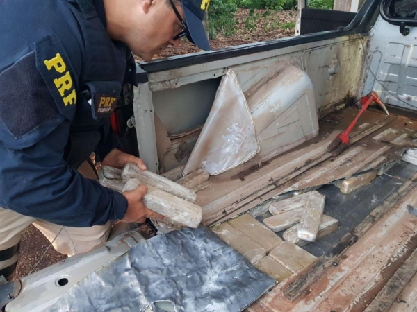 A droga estava escondida sob o assoalho e nas laterais da caçamba de uma caminhonete Fiat Strada. Com placa da Argentina, o veículo foi abordado pelos agentes da PRF por volta das 5h30, na BR-277.