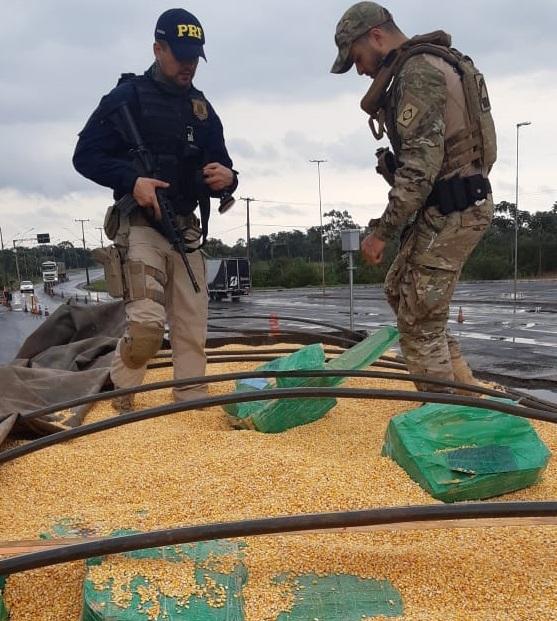 Durante a entrevista, o motorista entrou em contradição e disse aos agentes federais que estava transportando vários fardos de maconha ocultos em meio à carga de milho, bem como que pretendia entregá-los na cidade de Maringá (PR).