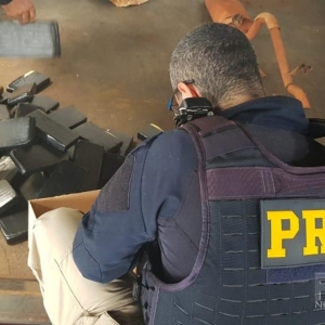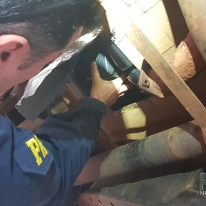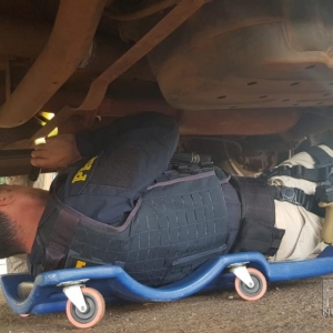 A droga era transportada em um compartimento oculto, sob o assoalho de uma caminhonete Mitsubishi L200. O motorista foi preso em flagrante.