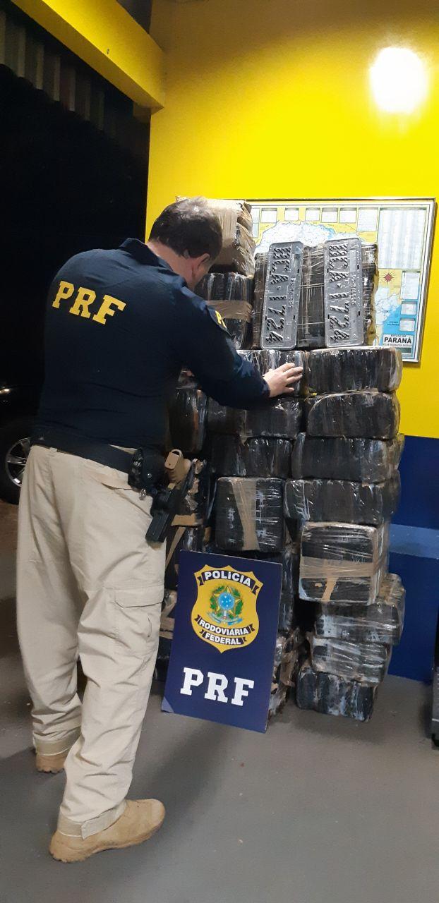 Em seguida o veículo foi encontrado abandonado, com grande quantidade de entorpecentes em seu interior, nas proximidades do KM 641 da BR 277.