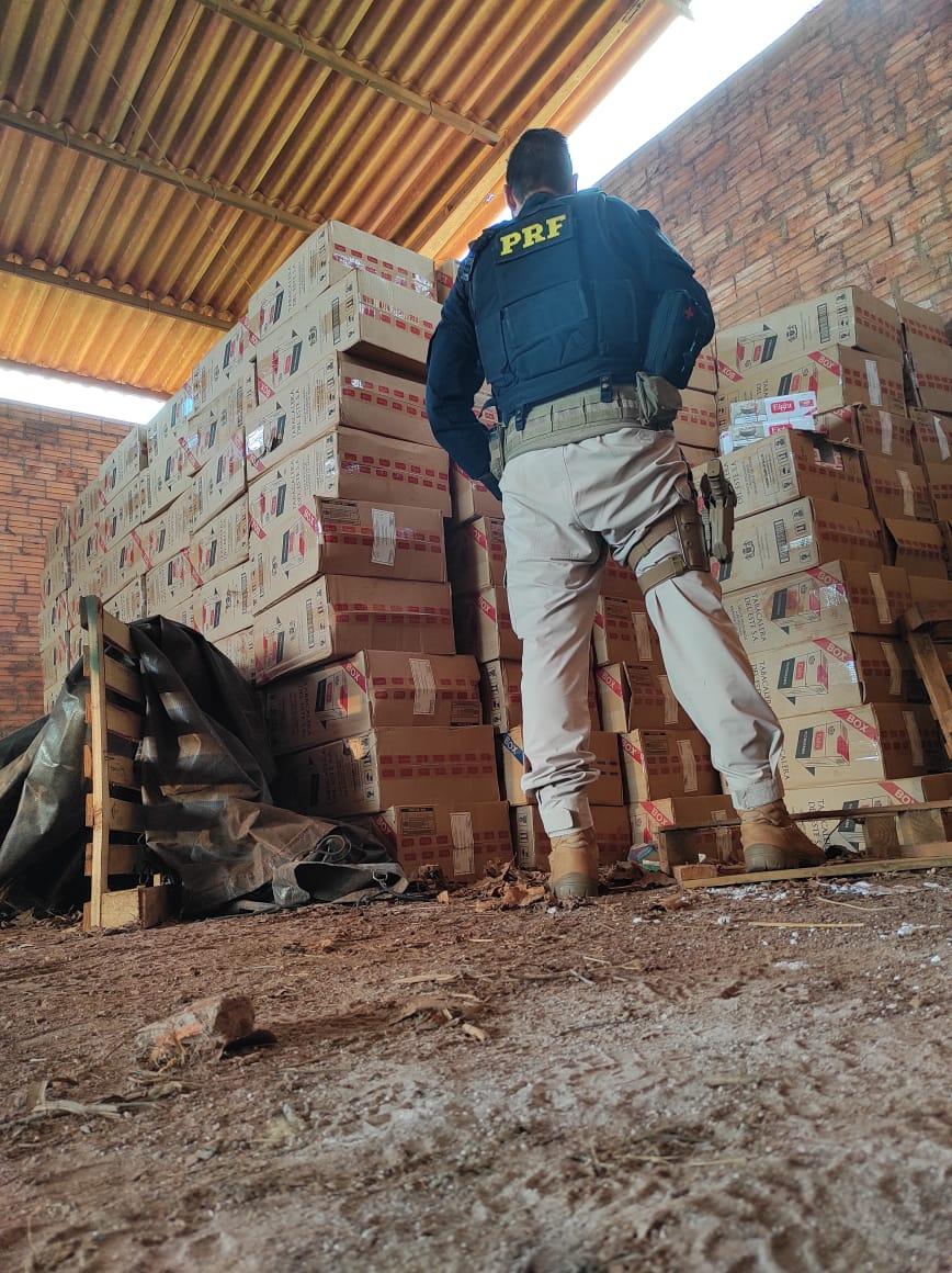 Durante a Operação Égide no Paraná, com o monitoramento de quadrilhas que atuam no contrabando de cigarros na região da fronteira com o Paraguai, a PRF identificou um depósito clandestino de cigarros na área rural de Terra Roxa, o prejuízo dos criminosos ultrapassa um milhão de reais.