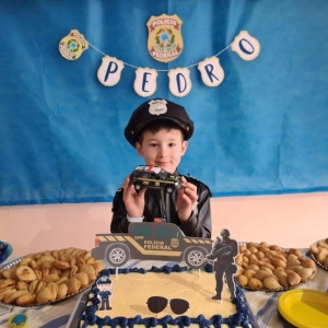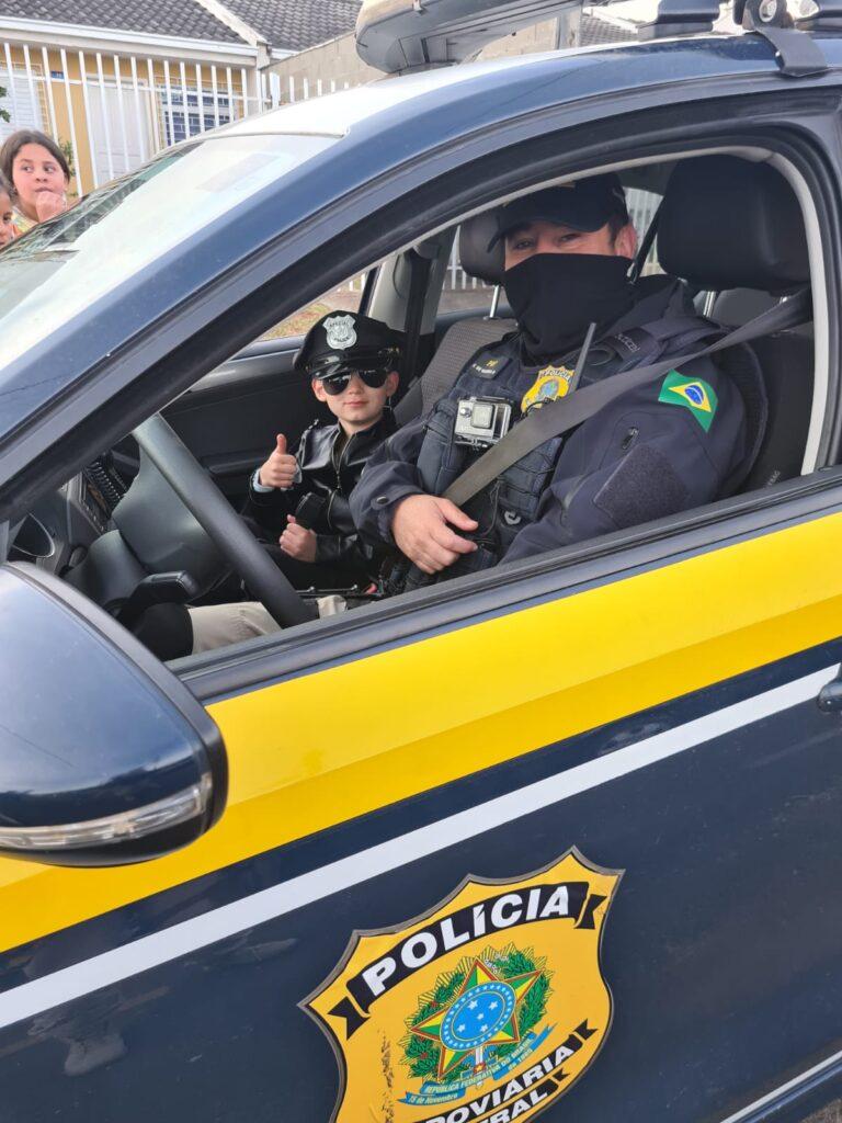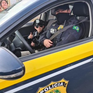Pedro fez 7 anos e já sonha em ser policial. A mãe do Pedro procurou a delegacia da PRF e falou da admiração que o menino tem por policiais e convidou a PRF para participar do aniversário de Pedro que aconteceu neste sábado (31), em Ponta Grossa.