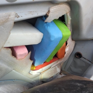 A Polícia Rodoviária Federal localizou, na manhã de hoje (27), 45 quilos de cocaína escondidos na estrutura de um veículo abordado em Arapongas-PR. O ilícito foi localizado após os policiais suspeitarem do intenso nervosismo do condutor do veículo, um homem de 35 anos, e do forte odor característico de droga.