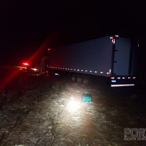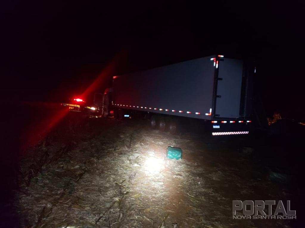 Por volta de 2h40, as equipes policiais se depararam com uma carreta estacionada ao lado de acampamento que servia de base para uma organização criminosa especializada em contrabando. A área, escondida em meio à vegetação, fica nas imediações do Rio Piquiri.