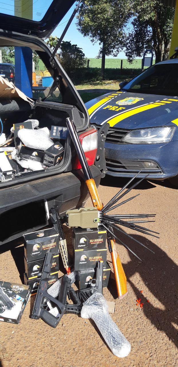 Diante dos fatos motorista, passageiro, veículo, mercadorias e arma foram encaminhados a Delegacia de Polícia Federal de Foz do Iguaçu para os procedimentos cabíveis.