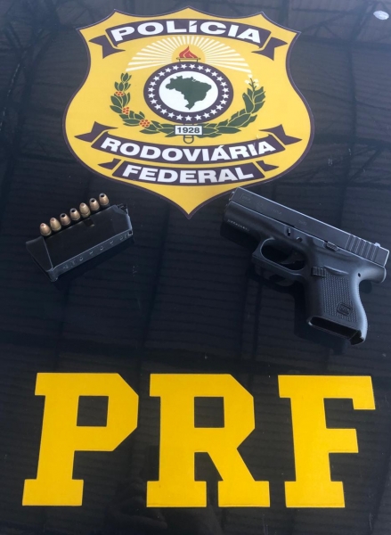 Nesta segunda-feira (03), a Polícia Rodoviária Federal prendeu um homem de 30 anos que transitava com uma arma de fogo no interior do seu veículo.