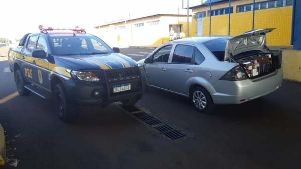 A Polícia Rodoviária Federal apreendeu grande quantidade de produtos eletrônicos e cigarros de origem paraguaia, em Mercedes, por volta das 16 horas de segunda-feira (30), que era transportado em um veículo Ford Fiesta Sedan.