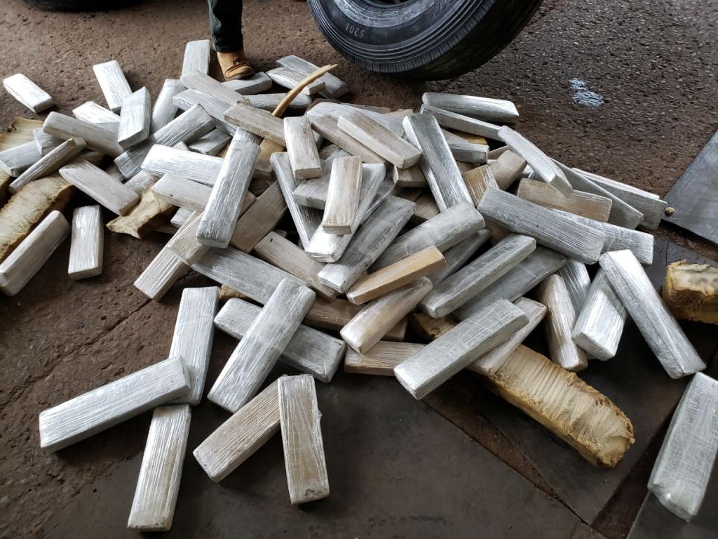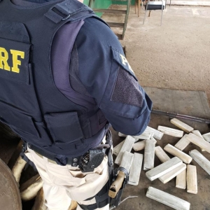 A droga estava nos rodados que estavam levantados do eixo traseiro de um Volkswagen PM1000, abordado por volta das 13h30, na BR-277, em frente à unidade operacional da PRF.