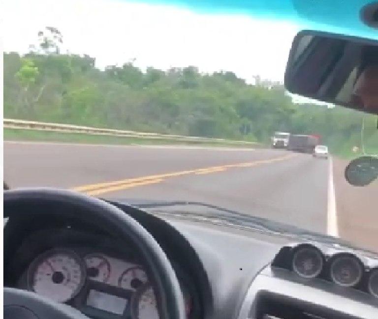 No período da tarde, policiais rodoviários federais receberam uma denúncia, acompanhada de um vídeo, onde um caminhoneiro dirigia zigezagueando pela rodovia,invadindo a faixa contrária da via diversas vezes e ameaçando outros usuários.