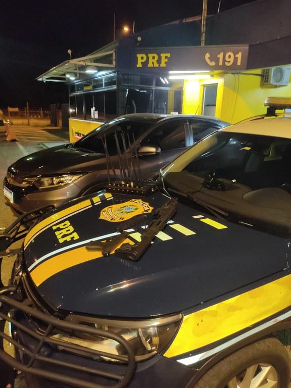 Por volta das 22 horas, equipes da PRF abordaram um veículo suspeito de realizar roubos de carga e sequestros a caminhoneiros na BR-277, distrito de São Luiz do Purunã.