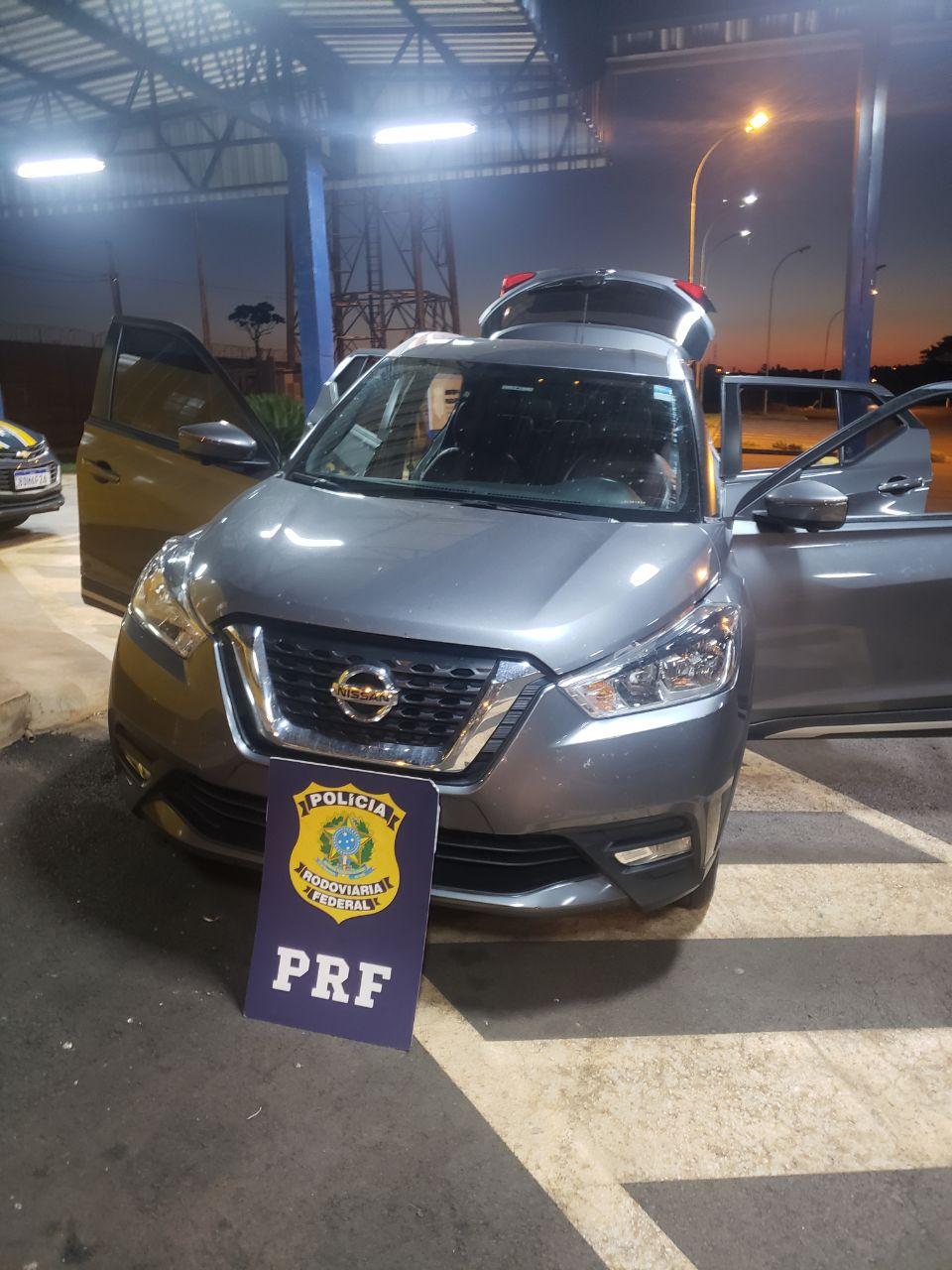 Em consulta ao sistema ficou constatado que o veículo havia sido roubado a poucas horas na cidade de Curitiba e estava com placas falsas.
