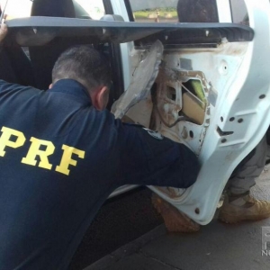O carro, um táxi com placa de Lagoa Vermelha (RS), foi abordado na BR-277, em frente à unidade operacional da PRF.