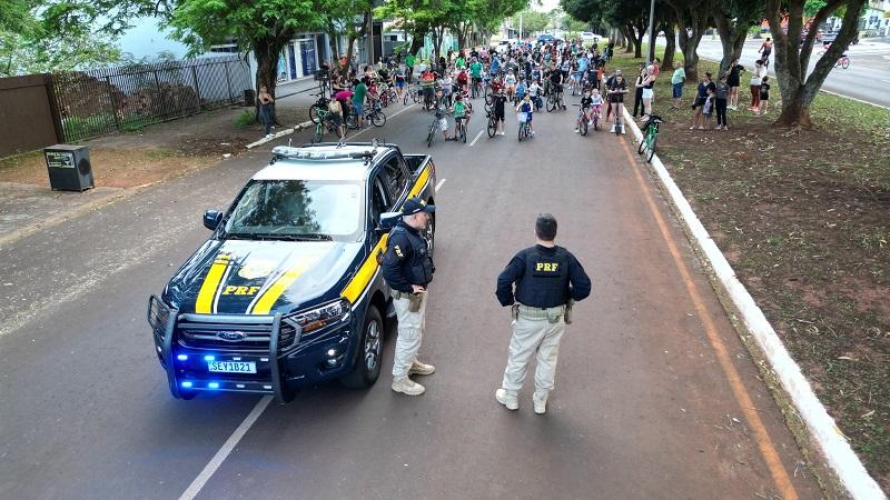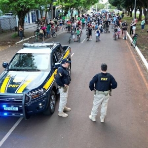A Polícia Rodoviária Federal (PRF) promoveu, na noite de quinta-feira (18), um passeio ciclístico em Guaíra (PR) para marcar a abertura da Semana Nacional de Trânsito.
