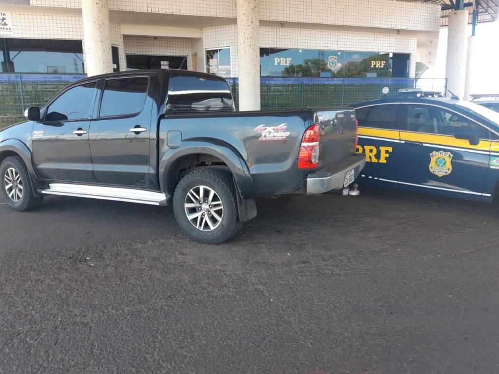 A Polícia Rodoviária Federal (PRF) recuperou na tarde desta quinta-feira (10) na Ponte Ayrton Senna, em Guaíra, uma caminhonete Toyota Hilux ano 2012.