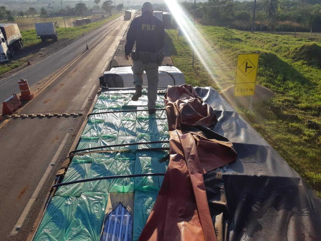 A Polícia Rodoviária Federal (PRF) apreendeu na madrugada desta quinta-feira (24), na BR-487, município de Alto Paraíso (PR), um caminhão LS transportando 900 caixas de cigarros contrabandeados do Paraguai.