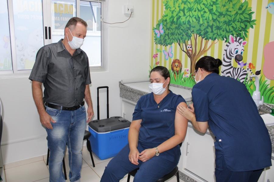 Adelete Becker, de 34 anos, 13 destinados a área de saúde, enfermeira responsável pelo setor de imunização, foi a primeira pessoa a ser vacinada contra o Coronavírus no município.