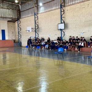Entre os beneficiados está o Colégio Estadual Gaspar Dutra, de Nova Santa Rosa, onde na ultima sexta-feira, cerca de 90 alunos do 1°,2° e 3° ano do Curso Técnico em Administração participam de encontros com profissionais da indústria, voltados ao desenvolvimento de competências essenciais para a empregabilidade.
