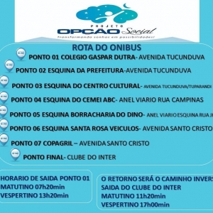Segue a rota que o ônibus irá passar para buscar e trazer os alunos do projeto: