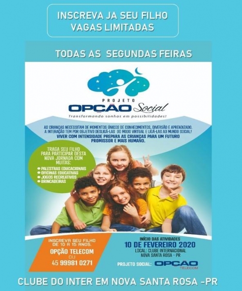 Com a volta as aulas iniciam-se também as atividades do Projeto da empresa Opção Telecom, através do setor social, lembramos que as vagas são limitadas.