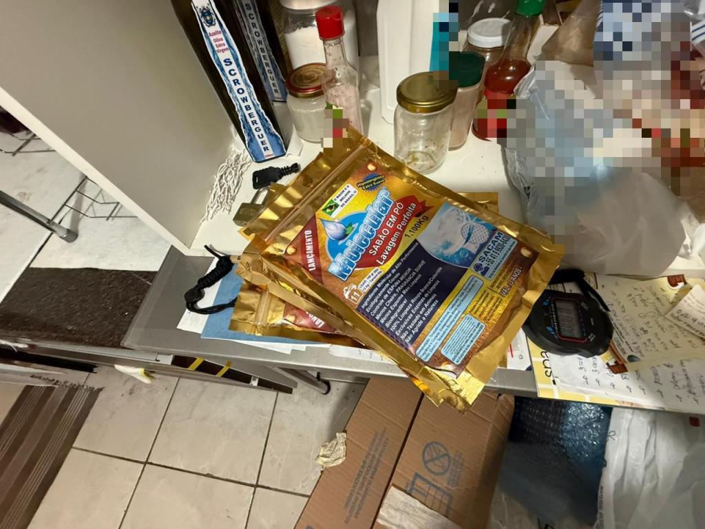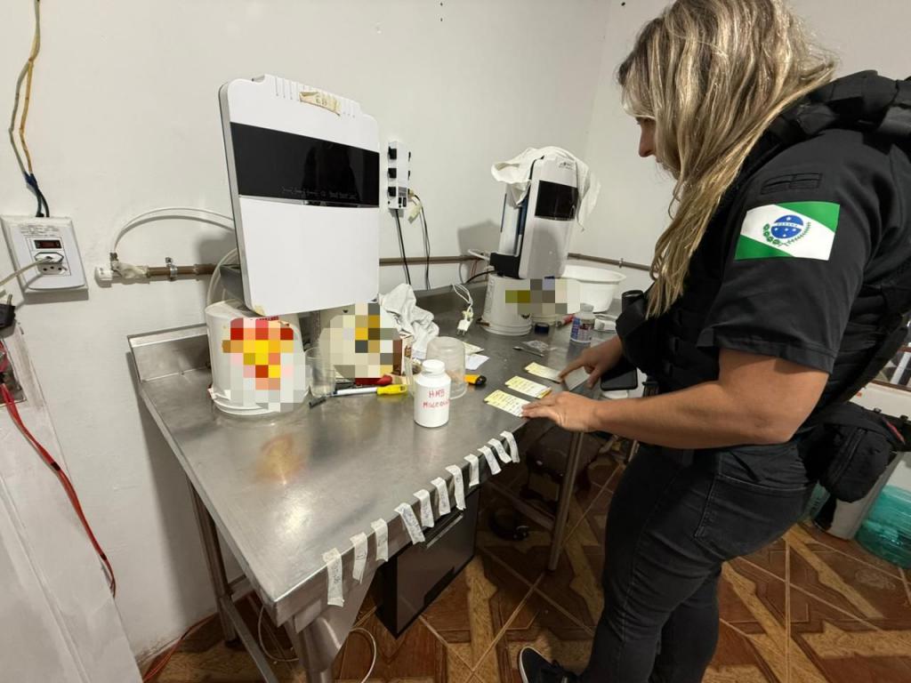 Durante as diligências, os policiais foram até o endereço indicado nas denúncias e encontraram um espaço utilizado para a fabricação clandestina dos produtos. No local, foram localizados diversos itens produzidos de forma artesanal e divulgados como substâncias com propriedades medicinais.