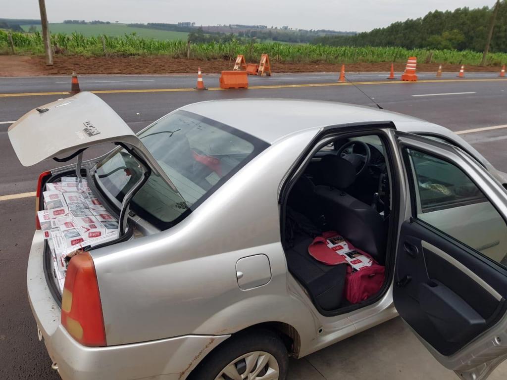Estes estavam acomodados sob os bancos traseiros do veículo e no porta-malas, totalizando 4.500 maços.