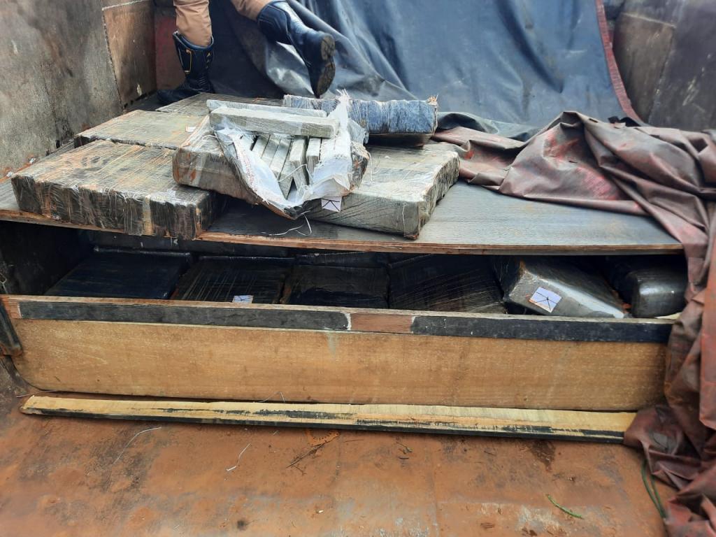 Os 980 quilos da droga estavam em uma estrutura de madeira, distribuídos em 50 fardos.