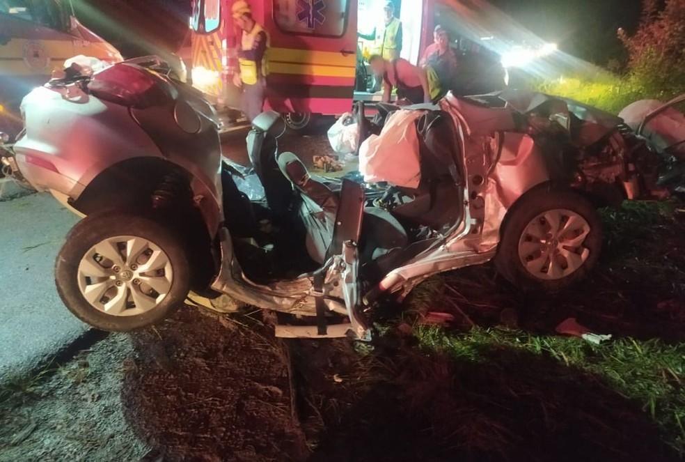 A colisão ocorreu no km 181 da BR-470, no bairro Pombinhas, por volta das 20h de sexta-feira (3), informou a Polícia Rodoviária Federal (PRF). O carro, um Gol com placas de Lages, na Serra catarinense, bateu de frente contra a árvore.