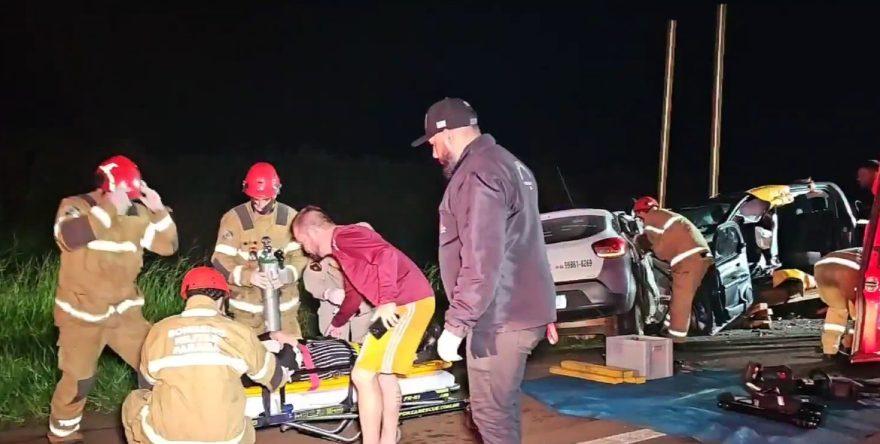 Um grave acidente ocorrido por volta das 22h45 desta terça-feira (15) resultou na morte de quatro pessoas na rodovia que liga Campo Mourão ao trevo de Mamborê. A colisão frontal envolveu um Renault Kwid, veículo de um empresa, e uma caminhonete Toyota Hilux. As informações sobre os óbitos ainda serão confirmadas.